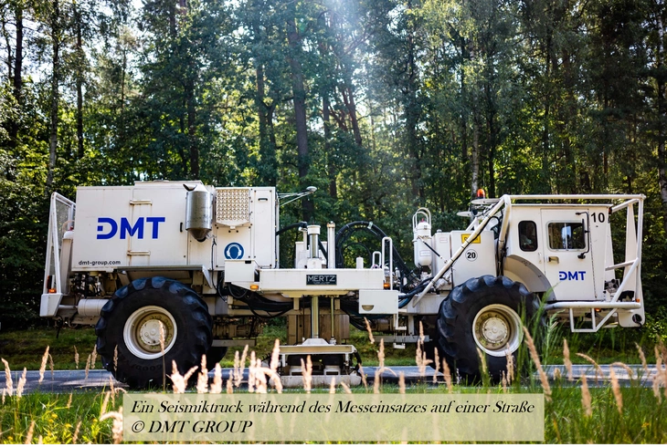 Ab Mai 2026 werden voraussichtlich die Messarbeiten im Gelände starten, mit der Vermessung und Markierung der freigegebenen Messpunkte sowie der perlschnurartigen Auslegung von Registrierungsgeräten (sog. Geophone). Die tatsächlichen Messungen (Datenakquise) werden im Anschluss beginnen, mit Befahrungen und Anregungen durch sogenannte Vibro-Fahrzeuge und gleichzeitiger Aufnahme durch die ausgelegten Geophone. Vibro-Fahrzeuge sind geländegängige Spezialfahrzeuge, die im Mittelteil mit einer Rüttelplatte ausgestattet sind und mit deren Hilfe Schallwellen zur Erkundung in den Untergrund gesendet werden können.